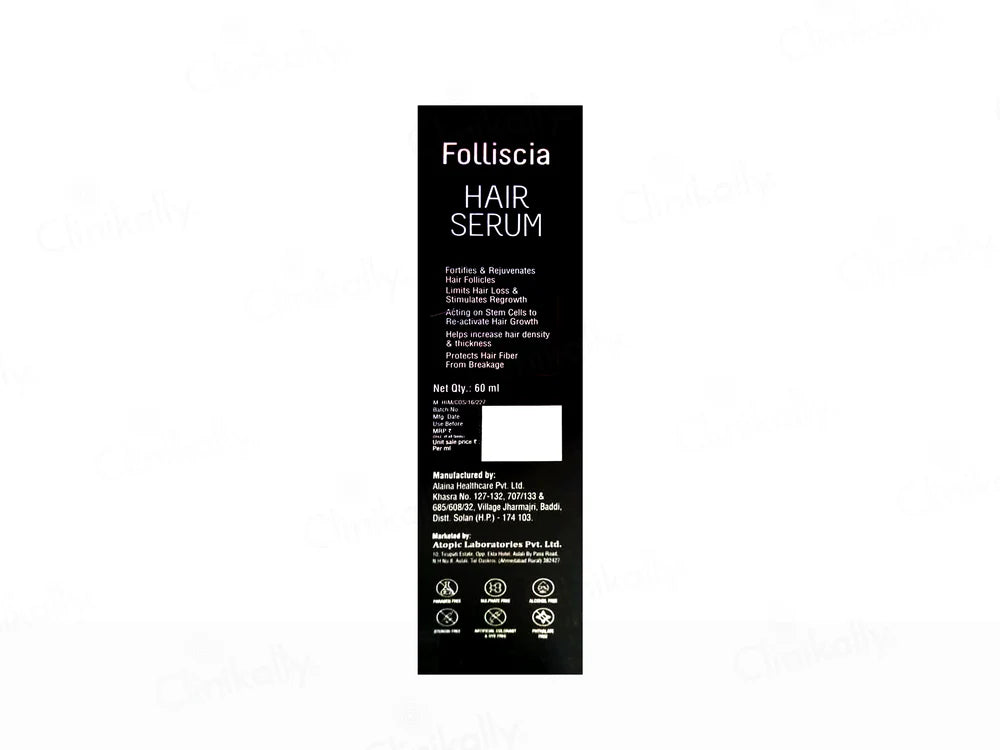 Folliscia Hair Growth Serum is a specially formulated topical serum designed to stimulate hair follicles, promote healthy hair growth, and reduce hair thinning. It is enriched with biotin, peptides, plant extracts, and essential nutrients that help strengthen hair from the roots, improve scalp health, and enhance hair density.