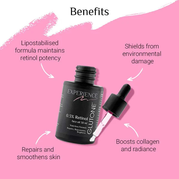 Glutone 0.3% Retinol Face Oil, 30ml is a lightweight facial oil designed to support smoother, healthier-looking skin. With regular use, it helps refine texture, reduce dullness, and promote a radiant glow. The fast-absorbing formula nourishes the skin without greasiness, making it suitable for daily skincare routines.
