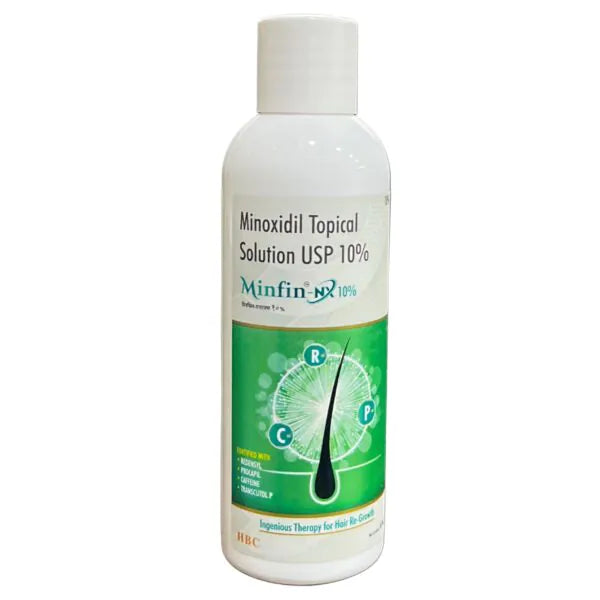 Minfin NX 10% Solution is a specially designed topical solution that helps in reducing hair thinning and promoting thicker-looking hair. It is easy to apply, non-greasy, and quickly absorbs into the scalp, making it suitable for regular use. With consistent application, it supports healthy-looking hair density and improves overall hair appearance.