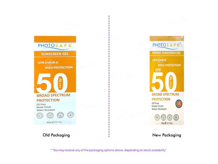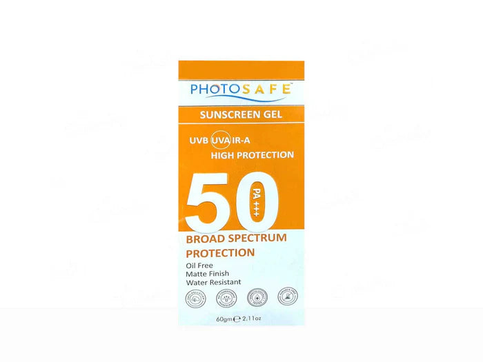 Photosafe Hybrid Broad Spectrum Sunscreen Gel SPF 50 PA++++ provides advanced sun protection with a lightweight, non-greasy gel formula. Designed as a hybrid sunscreen, it combines both physical and chemical filters to offer comprehensive UVA and UVB protection. The high SPF 50 and PA++++ rating help prevent sunburn, tanning, and long-term skin damage caused by harmful rays. Its quick-absorbing texture makes it ideal for daily use under makeup or alone, leaving the skin protected and comfortable. Suitable for all skin types, including sensitive skin.