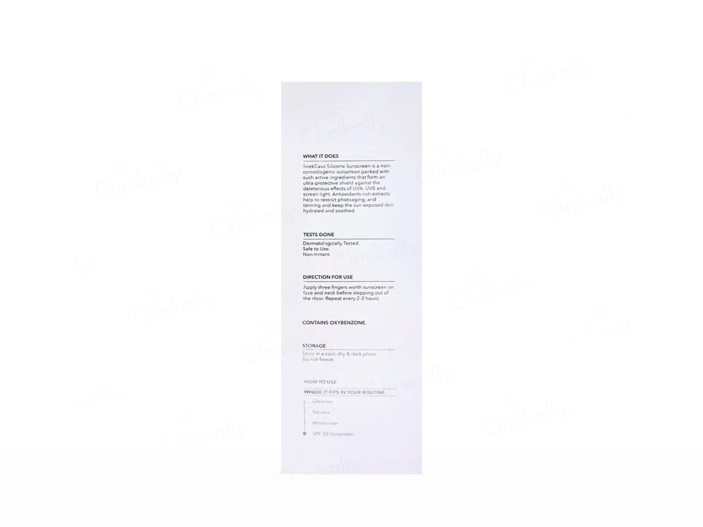 Seekcaus Silicone Sunscreen Gel SPF 50 PA++++ provides advanced protection against UVA and UVB rays with a lightweight, silky-smooth texture. Its non-greasy formula spreads easily, leaving a matte finish that is comfortable for daily wear. Designed to help prevent tanning, sun damage, and premature aging, it is suitable for all skin types, including sensitive skin.