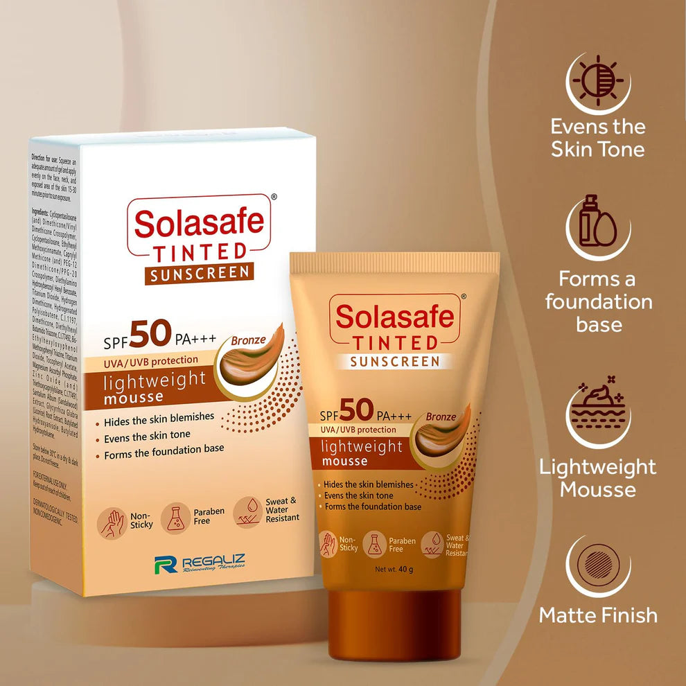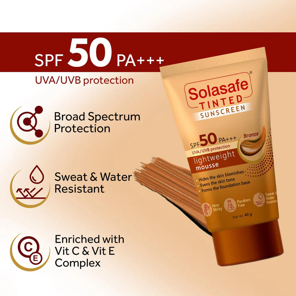 Solasafe Tinted Bronze Sunscreen SPF 50 is an excellent choice for those who want high sun protection and a radiant, even-toned complexion. It’s perfect for daily use, providing both sun defense and a natural bronzed finish.