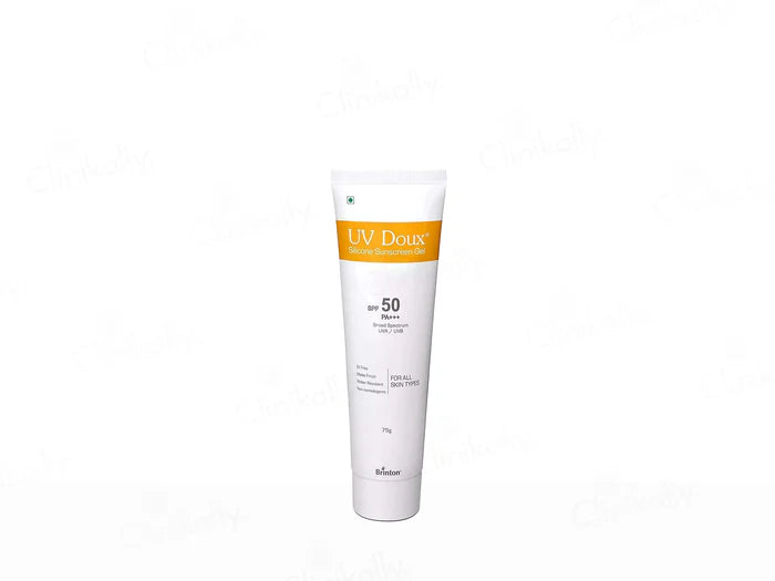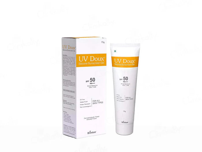 UV Doux Silicone Sunscreen Gel SPF 50 PA+++ is a dermatologist-recommended sunscreen that provides broad-spectrum UVA and UVB protection. With its silicone-based, non-greasy formula, it spreads smoothly, leaving a matte finish without clogging pores or causing a white cast. The water-resistant and sweat-resistant texture makes it perfect for daily wear under makeup or outdoor activities. Suitable for all skin types including oily, acne-prone, and sensitive skin, UV Doux sunscreen helps protect against sunburn, premature ageing, and tanning while keeping skin fresh and healthy.