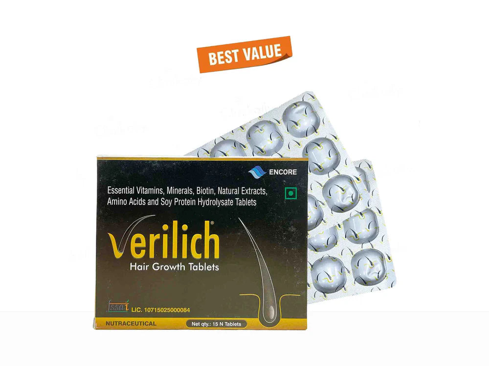 Verilich Hair Growth Tablet – Chocolate Flavour is a tasty daily supplement designed to support healthy hair growth and strengthen hair from the roots. Regular use helps maintain hair vitality, reduce breakage, and promote fuller, healthier-looking strands. Its convenient chewable form makes it easy to include in your daily routine.