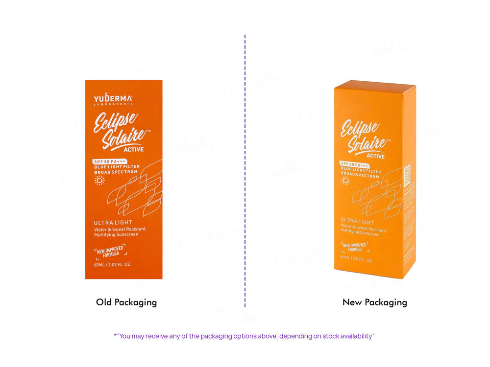 Yuderma Eclipse Solaire Active Sunscreen SPF 50 PA+++ is a lightweight, non-greasy sunscreen designed for everyday use. Its smooth texture blends easily into the skin, leaving a soft matte finish that feels fresh and comfortable throughout the day.