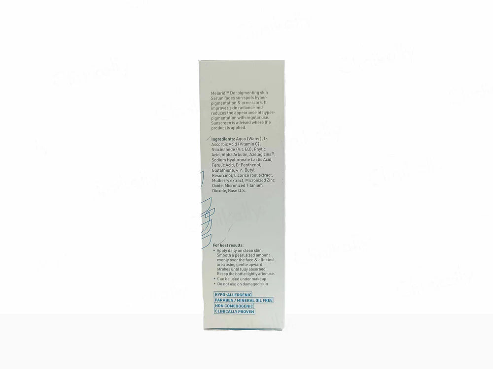 Yuderma Melarid De-Pigmentation Serum is a lightweight skin-brightening formula designed to help improve uneven skin tone and enhance radiance. Its advanced blend of active ingredients helps reduce the appearance of dark spots and pigmentation, promoting a clearer and smoother-looking complexion. Suitable for all skin types, this serum absorbs quickly and leaves the skin feeling fresh and luminous.